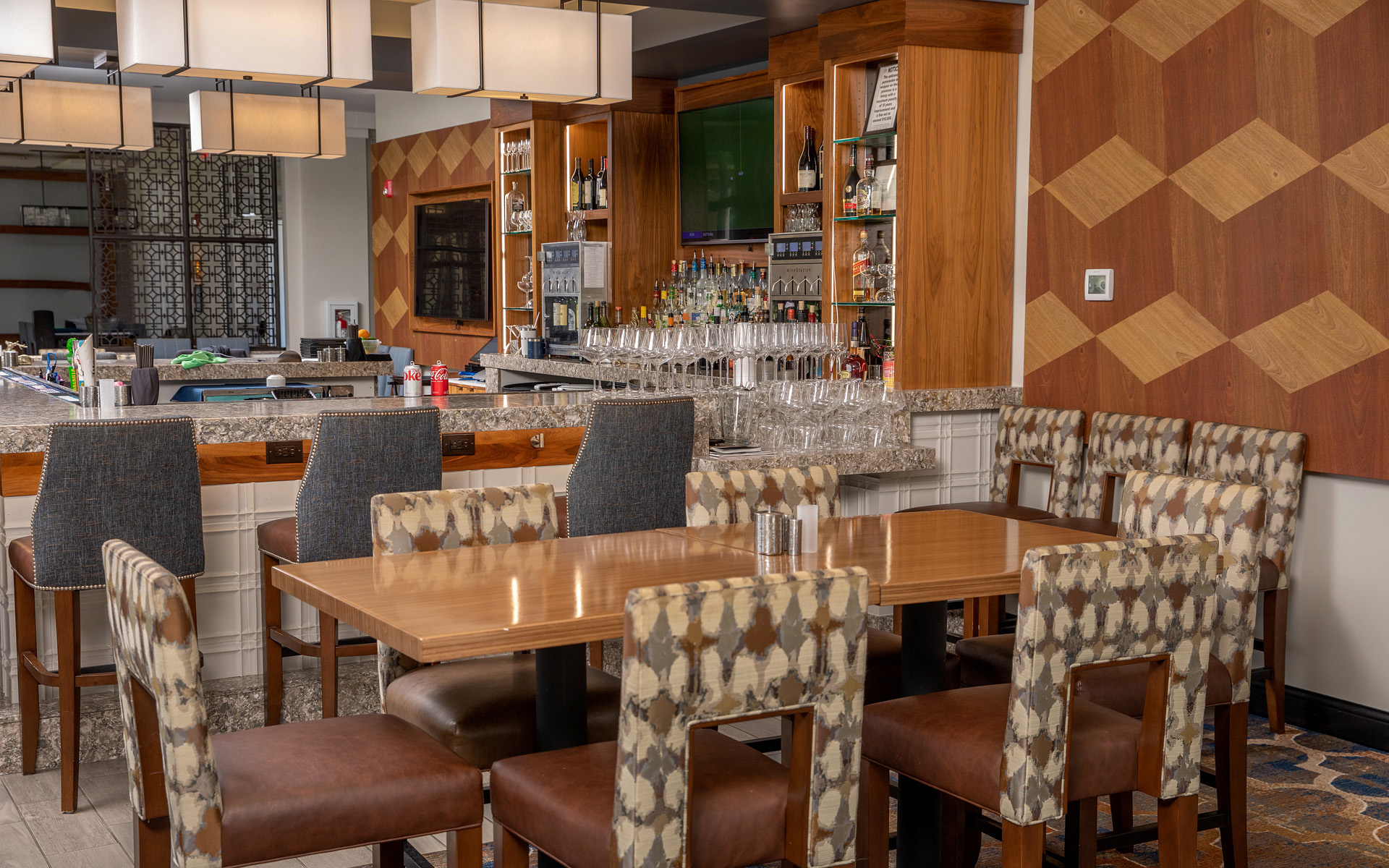 Rated #8 Best Private Club Locker Room by Club & Resort Business. After your round, explore bold flavors, watch the game on the big screens and socialize with friends over cocktails at the bar in the diverse atmosphere of the Men’s Locker Room. The Men’s Locker Room is a great spot to gather before or after Golf. It is a full-functioning bar; you can order breakfast, lunch, or dinner.